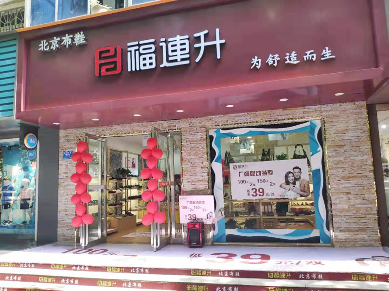 在此,福連升健康休閑中年鞋(原福連升(原福聯(lián)升)老北京布鞋)全體員工祝賀:福連升休閑布鞋河南商丘團結(jié)店開業(yè)大吉、生意紅火、財源廣進!誠邀各地有志之士加盟合作,共享輝煌!