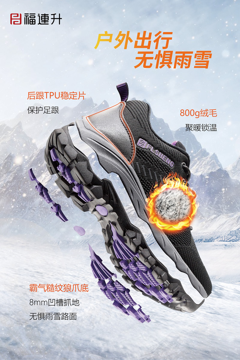 福連升冬季新品打破鞋品科技新思路,專業(yè)研發(fā)特別推出黑科技摩力磁震鞋、保溫暖冬羊毛鞋、安全生活止滑鞋、無懼污漬防水鞋四大板塊冬款新鞋品。